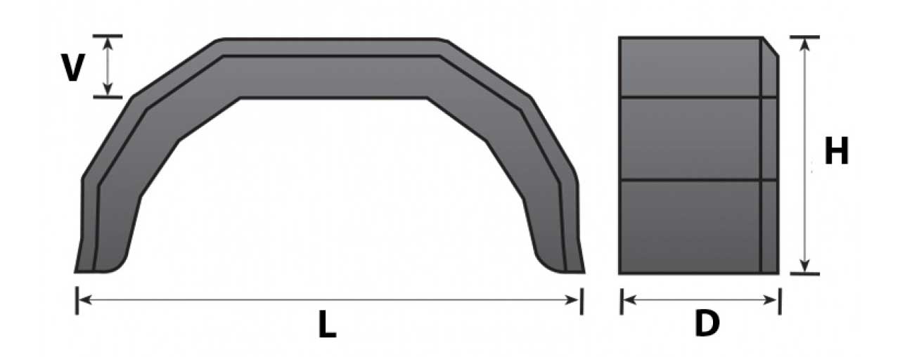 Drawing dimensions L = 760mm D = 210mm H = 335mm V = 95mm